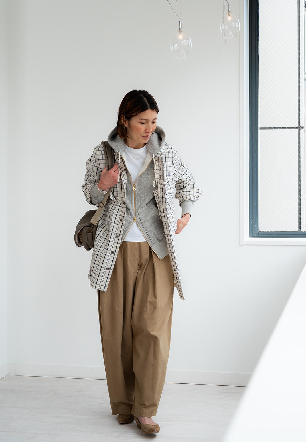 抜け感のある、穏やかな休日コーディネートが出来上がり。