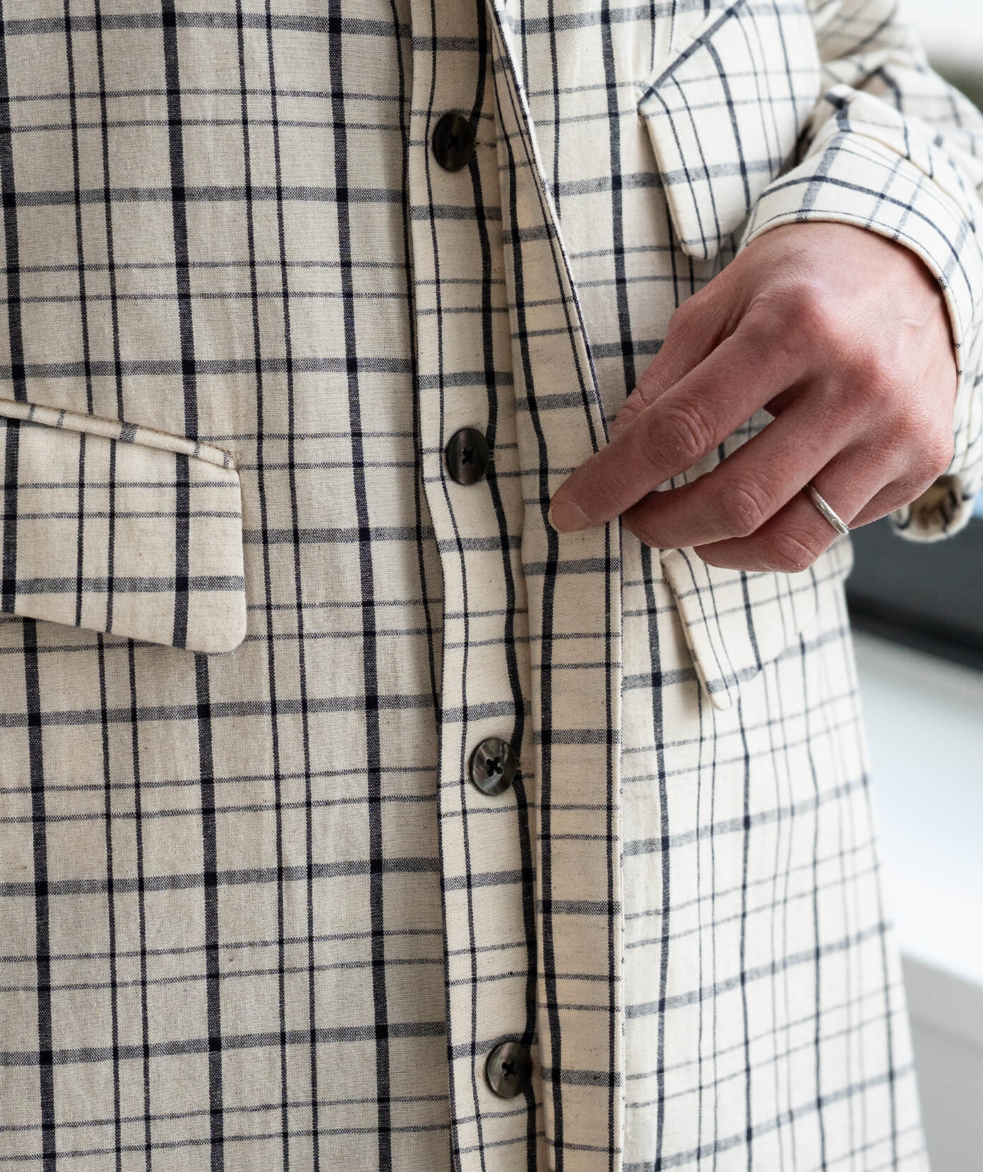 軽い羽織ものと思いきや、こだわりのディテールが効いています。