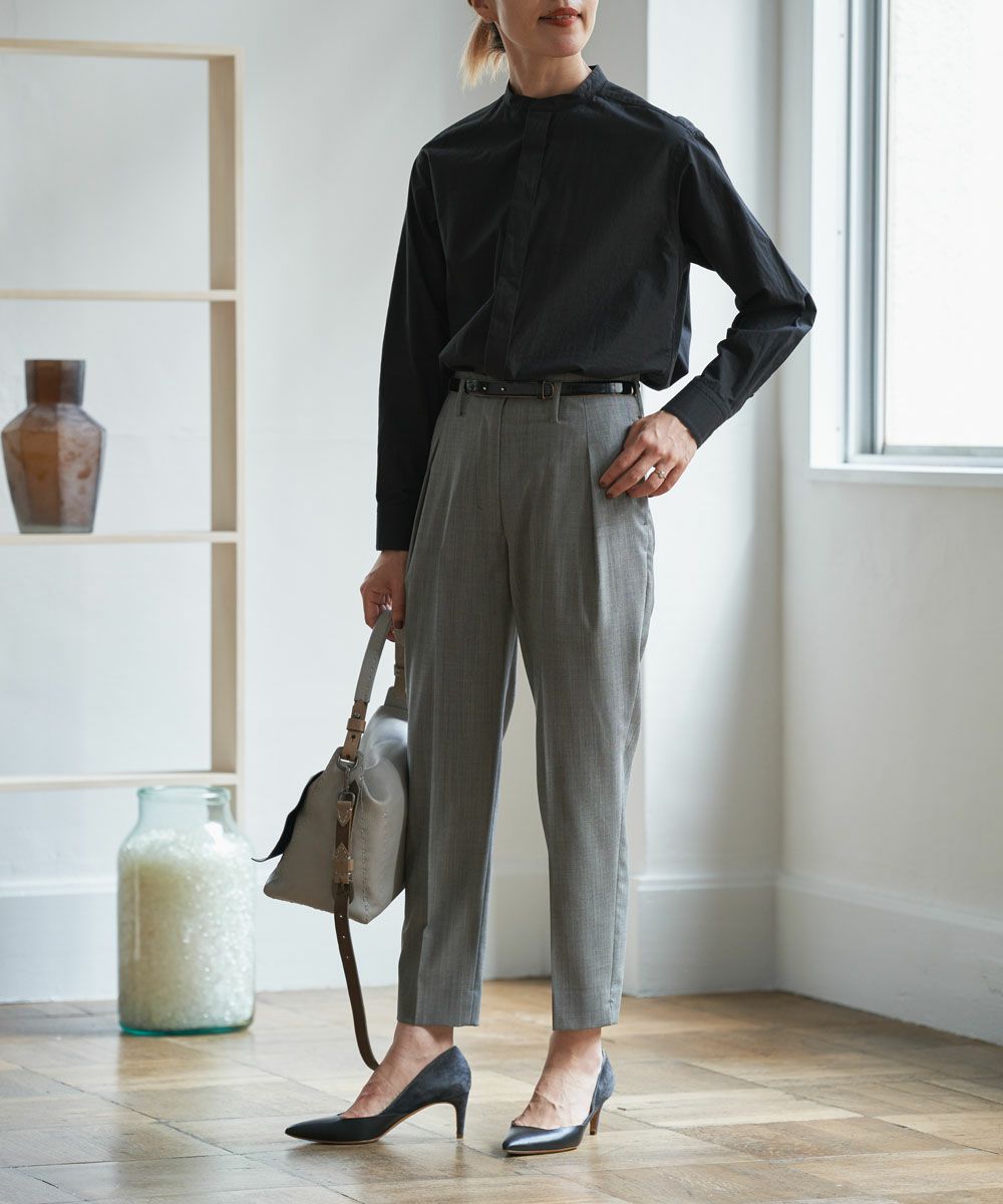 一着あると、とっても便利で頼りになるから色違いや素材違いでお求めのお客様もたくさん。だからお店では「リピートパンツ」って呼んでいます。定番のブラックも着た時の雰囲気は、コンサバ過ぎず、モード過ぎずちょうど良い加減に。