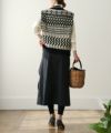 そこに温かみのある柄のニットベストを重ねることで、親しみやすいカジュアル感をプラス。