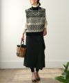 そこに温かみのある柄のニットベストを重ねることで、親しみやすいカジュアル感をプラス。