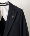 襟元のフラワーホールにはライブラリアンの証(バッジ)のかわりにピンブローチがあしらわれています。