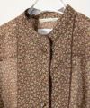 ホーンボタンは、小花柄の生地に溶け込むような同系色。上品な天然の輝きでさりげない存在感があります。