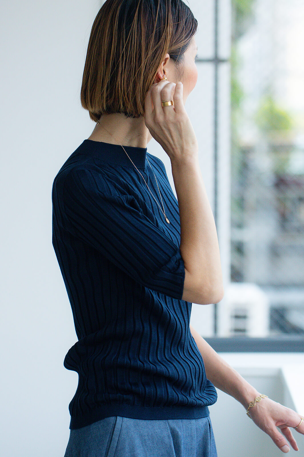 服を描くように着て