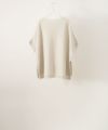 身体をカバーしてくれるチュニックのようなシルエットの洋服は、何となく避けてきたのですが、スタッフの方の着用画像(白いシャツとの重ね着)がとても素敵で試してみたくなりました。 入荷待ちだったので2ヶ月後に届いた頃には、熱も冷め箱に入ったまま放置状態でしたが、友人とのランチに着て行くことに。 手にとってみるとサラッとしたニットはとても軽く身幅がゆったりして、たくさん空気が通り抜けるのかとても涼しい! 袖丈は、年齢が出てしまう肘をいい感じで隠してくれる長さが嬉しいです。また袖口は編み方を変えてあっていいアクセントになってます。 大きなシルエットですが、素材や色味(ミストブルー)が上品な印象で、やっぱり洋服って着てみないとわからないなぁを実感しました。 友人とのランチには、黒のショートパンツを合わせてみました。同色のグルカサンダルとバックで、ラフな感じを楽しみました。もう少し季節が進んで涼しくなったら、私も重ね着してみようと今から楽しみです。