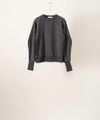 リブが長いことで、いわゆるスウェットとは違ってデザイン性にも富んでいて、まるでブラウスのカフスのようにも見えて、袖のボリューム感とのコントラストもいい感じに。