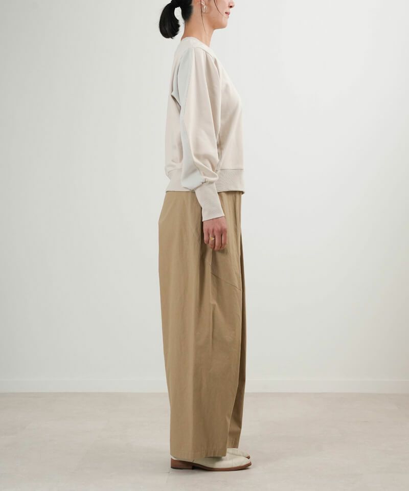 リブが長いことで、いわゆるスウェットとは違ってデザイン性にも富んでいて、まるでブラウスのカフスのようにも見えて、袖のボリューム感とのコントラストもいい感じに。