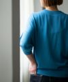 細かい目の揃った高品質なニットは、顔写り、肌写りが良くって、陽射しにあたるとしっとり艶めくような編み地が、上質感がありお出かけ着としても最適。