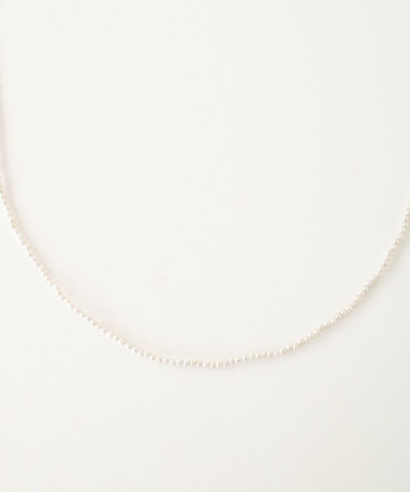 Stink Syndicateのアクセサリーはハンドメイドのため、形状や風合いが1点ずつ個体差があります。 デザイナー自身により手作業で作り進められるアクセサリーになります。 それぞれの風合いをお楽しみくださいませ。 パールのネックレスの留め具あたりにつけられたシルバーパーツには、シルバーのプレートにブランド名が施されています。 小さな小さなパーツを手作業で作られて、最後の仕上げにつけられているそうです。 製作した時期によって柄は変わることもあるそうで、そこはお楽しみの部分。 小さなこだわりだと、デザイナーさんが謙虚におっしゃっておられましたが、大切に作られている思いが伝わります。 どんなコーディネートにもなじむ、シンプルで存在感のあるネックレスです。 ネックレスに使われているガラスパール(人造真珠)は真珠核に真珠箔を施したものになります。
