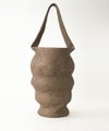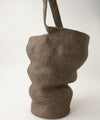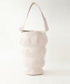 使い込まれた籠バッグをイメージして作られていて、その表情はどこか面白いバランス。 凸凹に縫製するのは、至難の技。 たくさんモノを入れると伸びて、また違った表情になります。