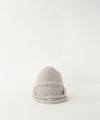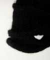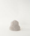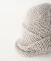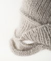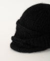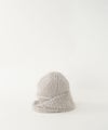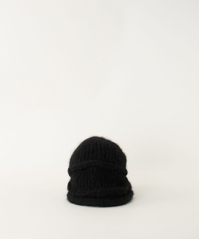 ニットワッチを3つのパーツに分けて編み、交差させてつなぎ合わせることでアシンメトリーなデザインに仕上がっています。 正面を変えてかぶることで表情が変わります。