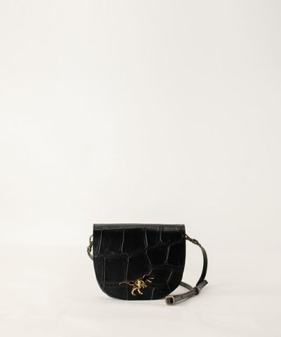 ダイナソー ポシェット ワニ型押し BLACK