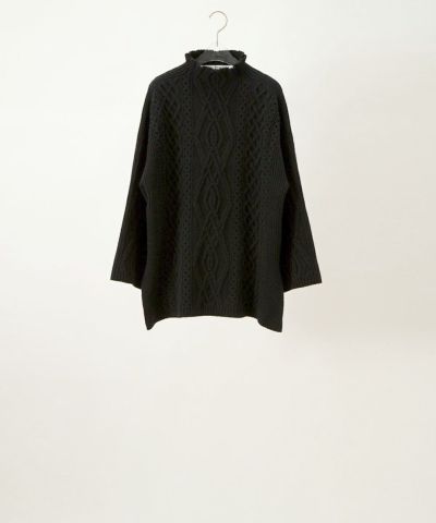 ちょうど手持ちのニット類がくたびれてきて、永く着られるスペシャルな一枚を探していたところ、こちらのニットに出逢い一目惚れで購入しました。いつもながらの丁寧なラッピングを広げて手に取ると、想像以上に柔らかな手触りで、素手で触るのを躊躇うほどでした。お色は黒なのに、なぜか編み地がはっきり浮き出て見えます。着心地もゆったり、一枚でストンとしたシルエットもステキだし、シャツとの重ね着のアレンジもいい感じです。手持ちのギャルソンチノ巻きスカートやパンツヴェルランと合わせるのが楽しみです。