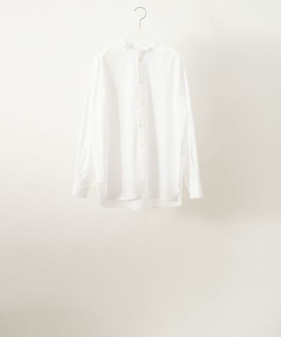 スタンドカラーでプルオーバーとても着やすいシャツで、試着したらあまりの着心地に良さに今日から着始めてしまいました。思ったより動きやすく中に薄手のタートルネックなどを着ても、又スカーフを巻いても綺麗にフィットします。生地は今まで購入させていただいたものより薄手の様な感じがします。重ね着にはぴったりだと思います。なんと言ってもプルオーバーがなのでインしてももたつきが有りません。本当に良い商品をありがとうございました。