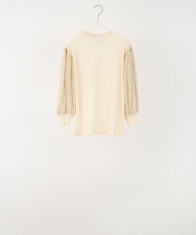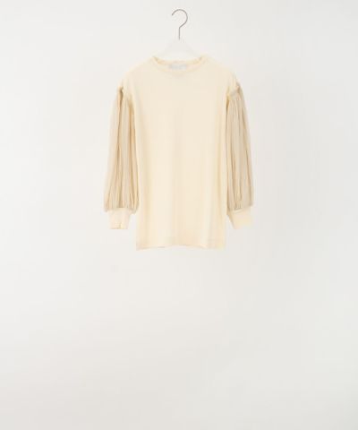 付かず離れずの絶妙なライン!着痩せ効果大です! 繊細なオーガンジーが贅沢なほどたっぷりとギャザーされた袖がまさに"羽"のように軽やかで華やか。さりげない後ろネック中央の刺繍が素敵です。 ボトムを選ばない万能なトップス。