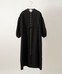 バッグや小物類をエバゴスで少しずつ揃えています。使い込むほどに味わい深く、経年もまた楽しみなアイテムたち。 この度初めてウェアを購入させて頂きました。 お行儀良く贅沢に並んだボタン使い、そして大袈裟すぎないギャザーに一目惚れ。 リネンの中でも"ワッシャー"リネンは実際にどんな肌触り、生地の厚みやブラックカラーの深みなど、実際に手にするまでは少なからず、不安もあり、期待もあり。。いつもながらの丁寧な梱包にワクワクと開梱。 そしてすぐに試着。 171センチの私にLサイズの着丈はちょうど良く、これからの季節にも活用できる素材感。 何よりも後ろスタイルがとても素敵で大満足です! 思い切って購入して良かった。また少しずつエバゴスのウェアも手にしていきたいな、と思っています。素敵なワンピースをありがとうございました。