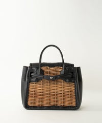 ebagos フニュ シュリンク・ボディバッグS (マロングラッセ) 籐ポケ付きショルダー BLACKエバゴス