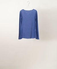 以前から、背中側のデザインがとても素敵なブラウスだと思っていました。ボタンの穴が金色なところとか、背中身頃にヨークが入っていたりとか、密かではあるけれど主張はある、といった感じのこだわりが見えます。薄手の生地で透け感がありますが、秋冬のニットの下に合わせると、その透明感がかえってニットの重さを軽くしてくれるような気がして、重ね着にぴったりだと思います。もちろん、春夏に1枚で着用しても、最近の暑さを考えると、この軽さが涼しげに見せてくれると思いますので、今から春夏に着用するのが楽しみでもあります。