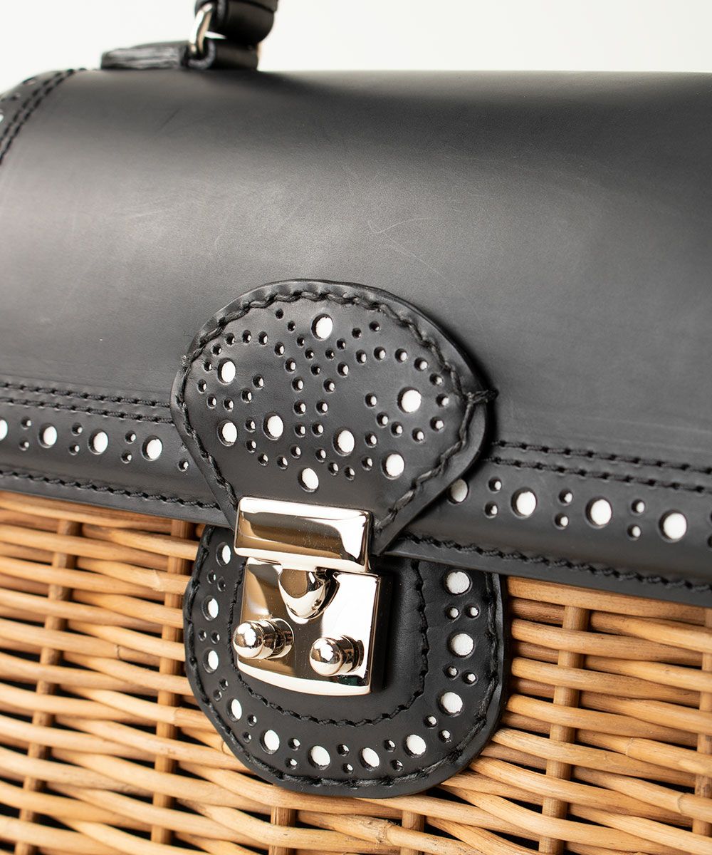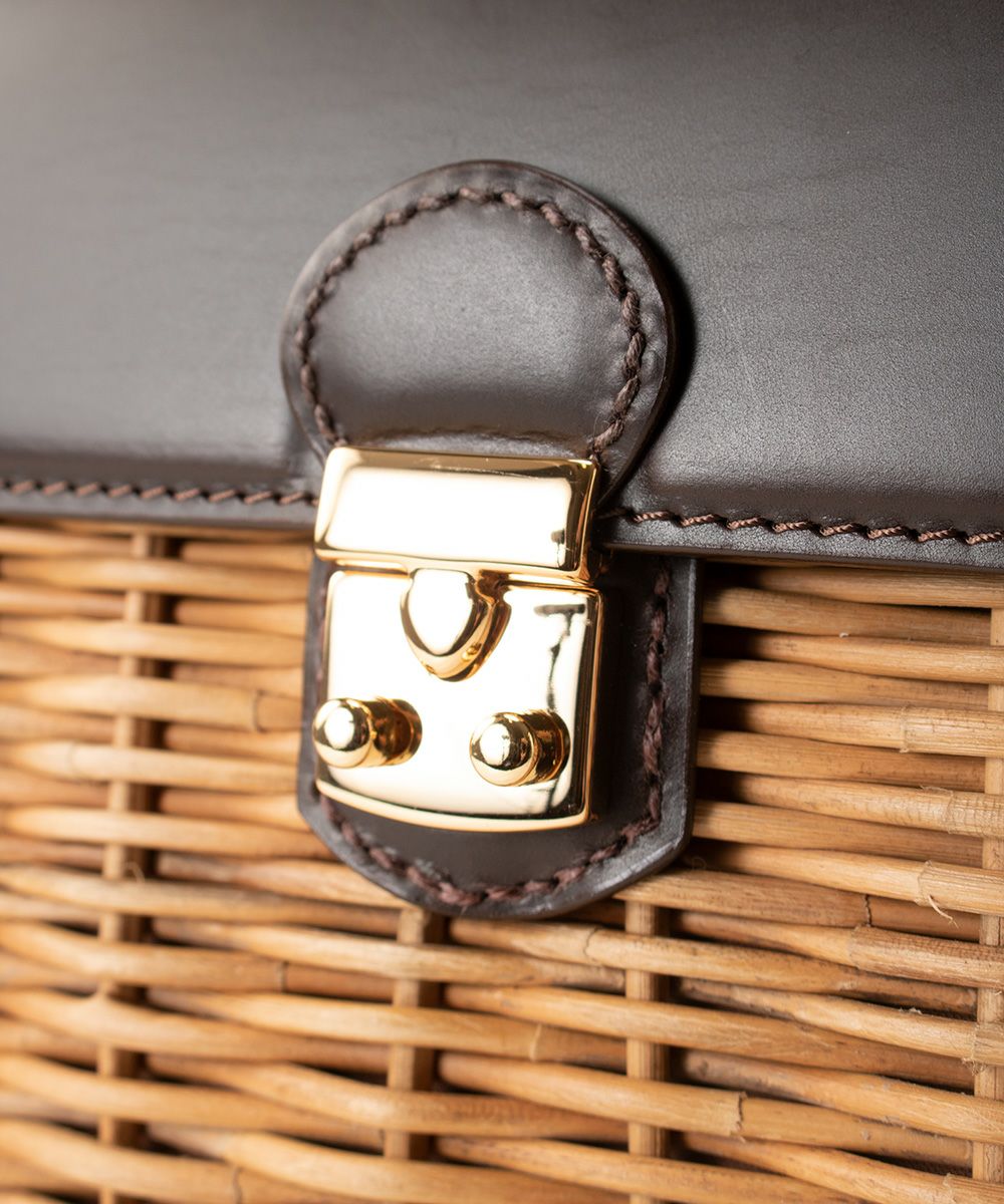 かっちりバッグ/カーフケリー カーフ×紅籐 BLACK